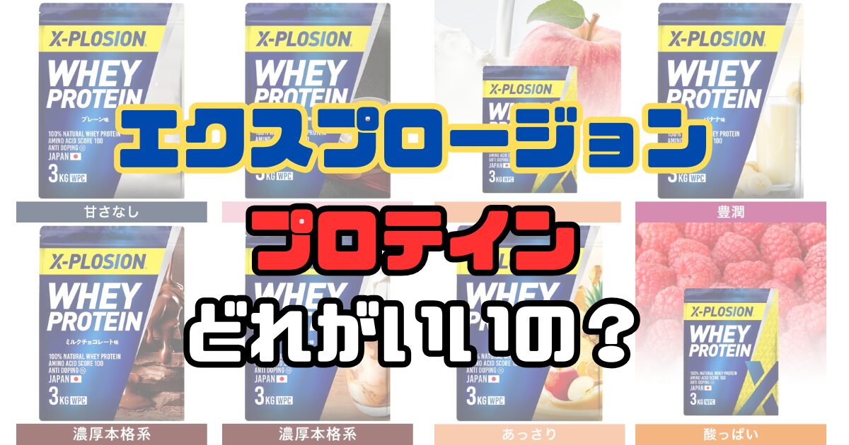今回は、低コストで購入できる【エクスプロージョン】のプロテインについて、成分表をもとに比較して紹介します!